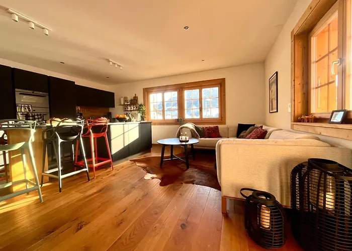 Gæster på 3 bedroom Modern Alpine Escape ferielejlighed vil kunne nyde aktiviteter i og omkring Château-d'Oex, som off piste skiløb og vandreture. Det befinder sig 4 km af Col de la Videman og 10 minutters kørsel fra reformed church Saint-Nicolas de Myre.